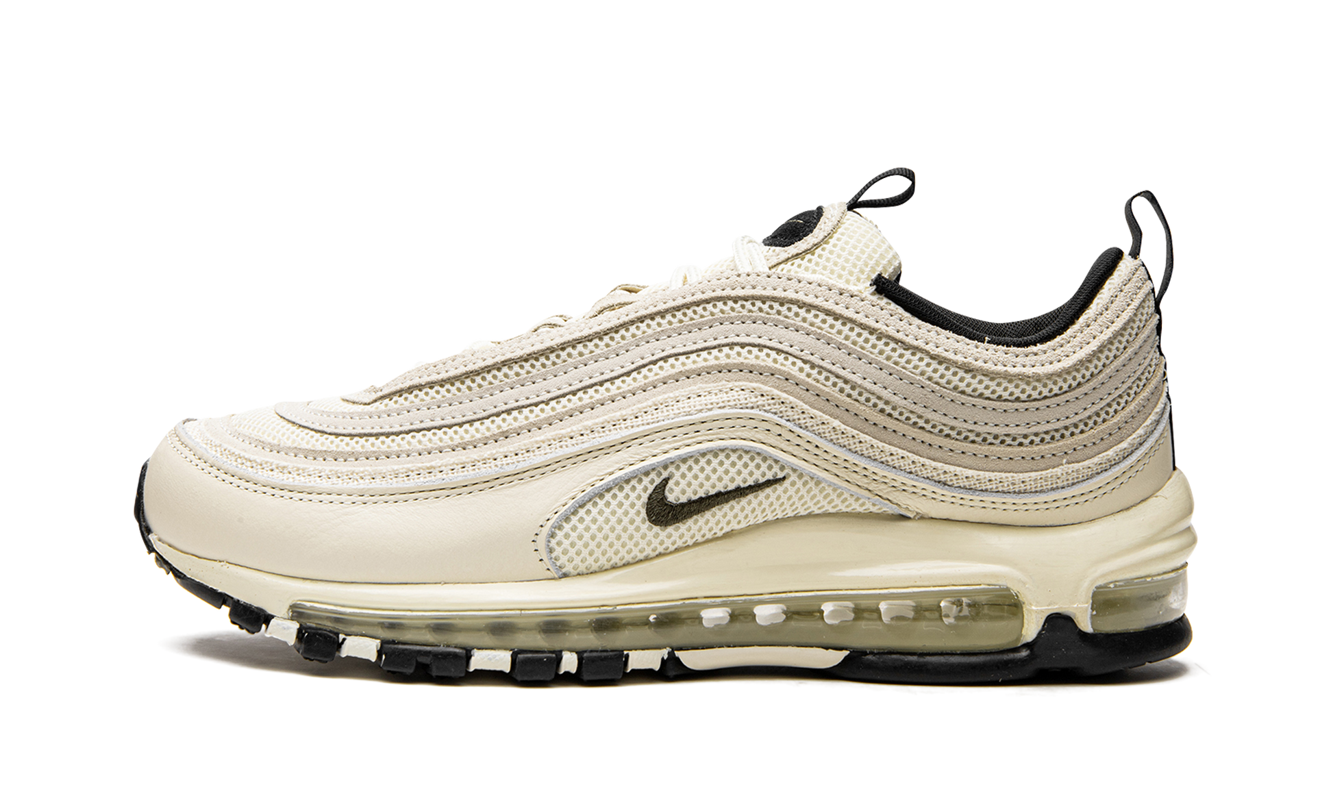 The Nike Air Max 97 “Coconut Milk” colorway brings a neutral and very versatile look to the classic running shoe. This Air Mac 97’s construction features an airy mesh base with suede, textile, and leather throughout the upper’s wavy panels in a rich Coconut Milk hue. Contrasting the cream white is black on the tongue tag, inner liner, insole, heel tab and rubber outsole. A Coconut Milk foam midsole with a full-length Air Max unit completes the design. Coconut Milk